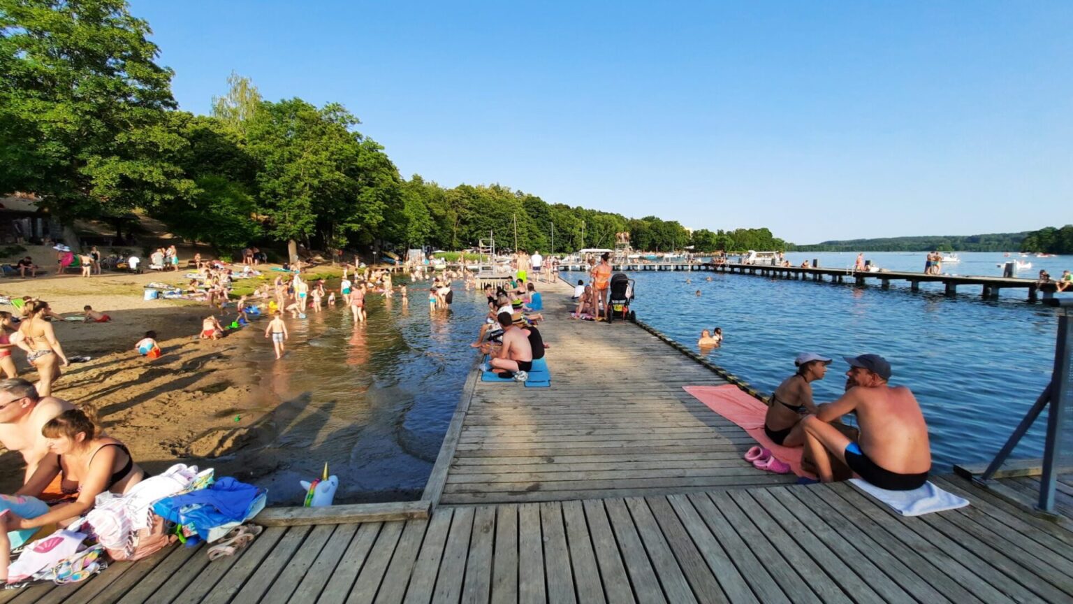 W Mrągowie funkcjonują dwie plaże miejskie zarządzane przez Centrum Kultury i Turystyki. Jedna plaża znajduje się przy ul. Jaszczurcza Góra, a druga przy Osiedlu Grunwaldzkim. Plaża przy Jaszczurczej Górze posiada molo, pomosty, wypożyczalnie sprzętu wodnego, boiska do siatkówki plażowej. Obie plaże mają kąpieliska strzeżone i czynne są w godz. 10.00-18.00.
